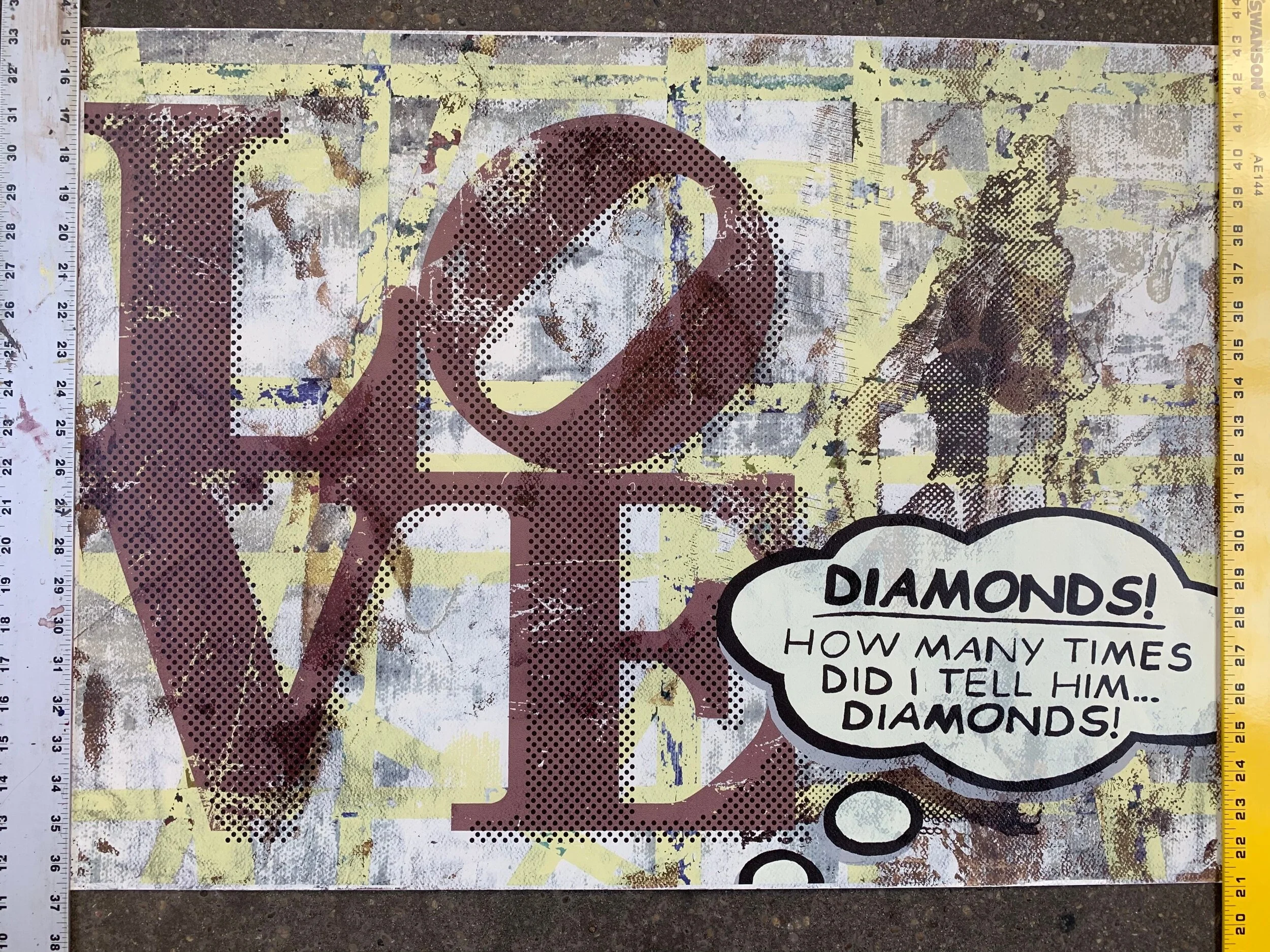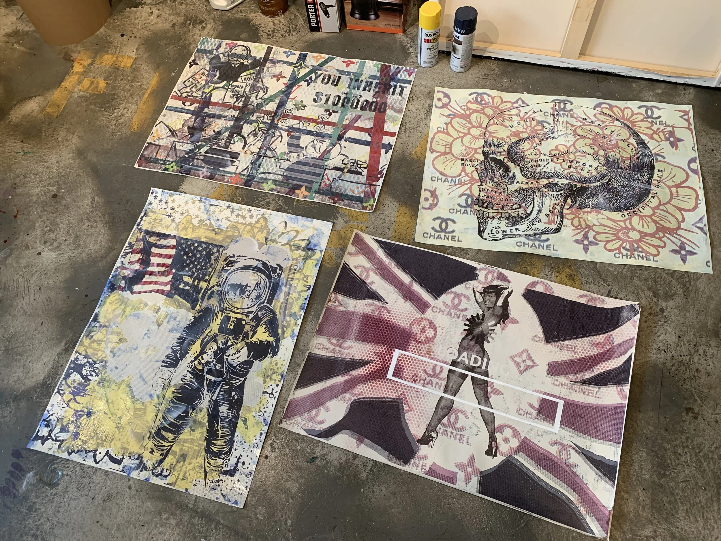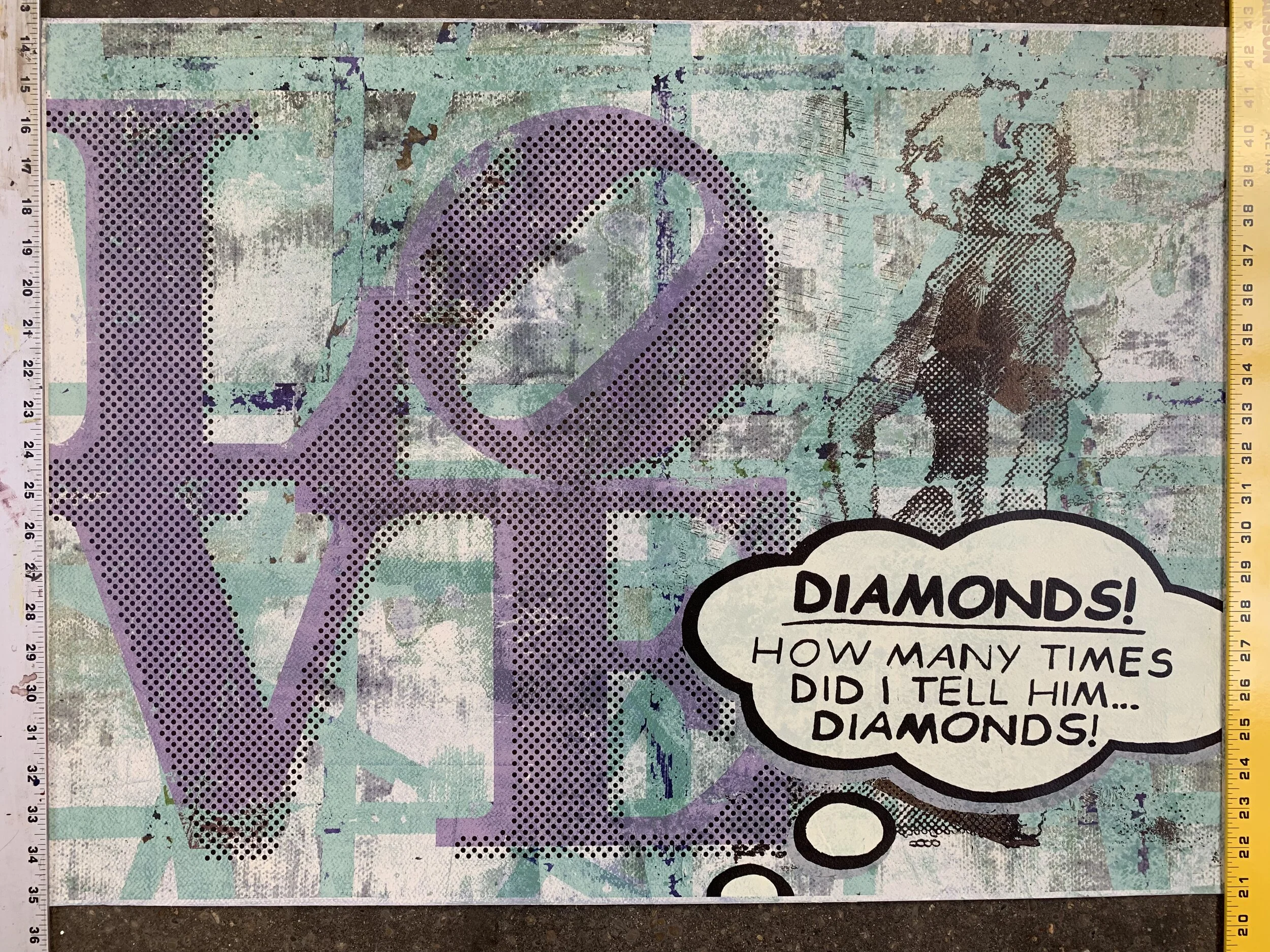 These are “unedited” images where contrast, saturation, light reflection have not been addressed. These are for sample only. Additionally, titles of these works are not shown here and the witty and observant titles I add for each original work help the viewer understand the meaning and context of these complex works
